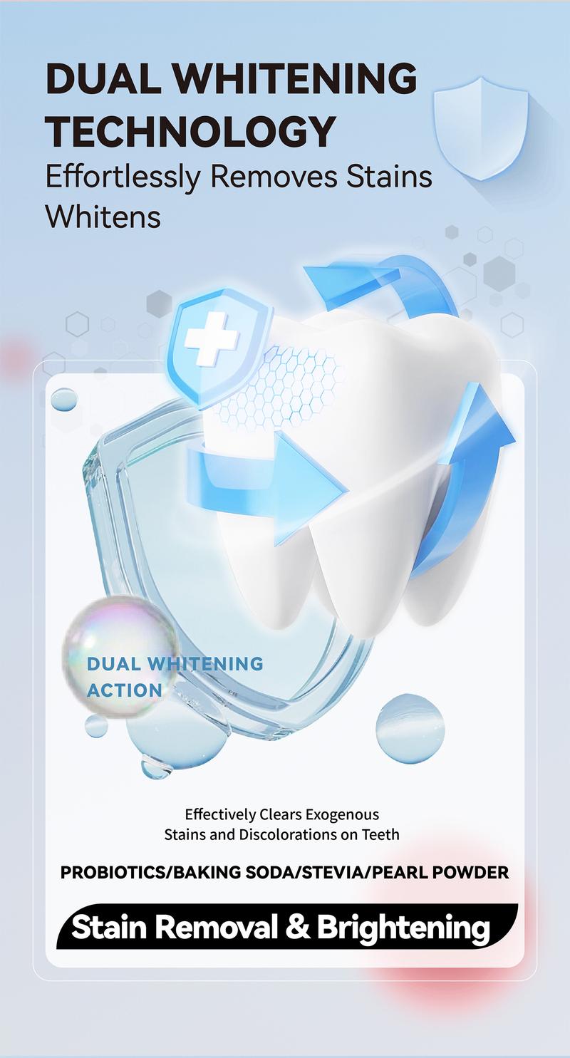 This toothpaste is ideal for daily oral care. It removes stains and plaque, ensuring a clean and fresh mouth. The probiotics and pearl powder add extra benefits, making it a comprehensive choice for oral hygiene. Perfect for maintaining a healthy mouth routine.